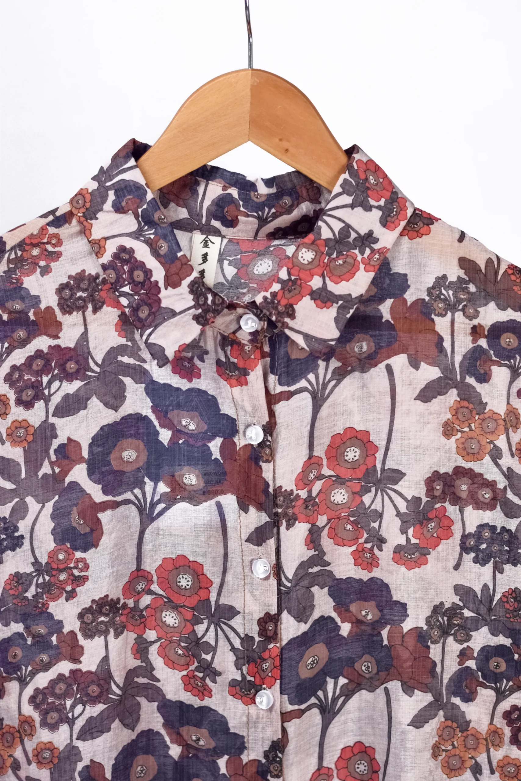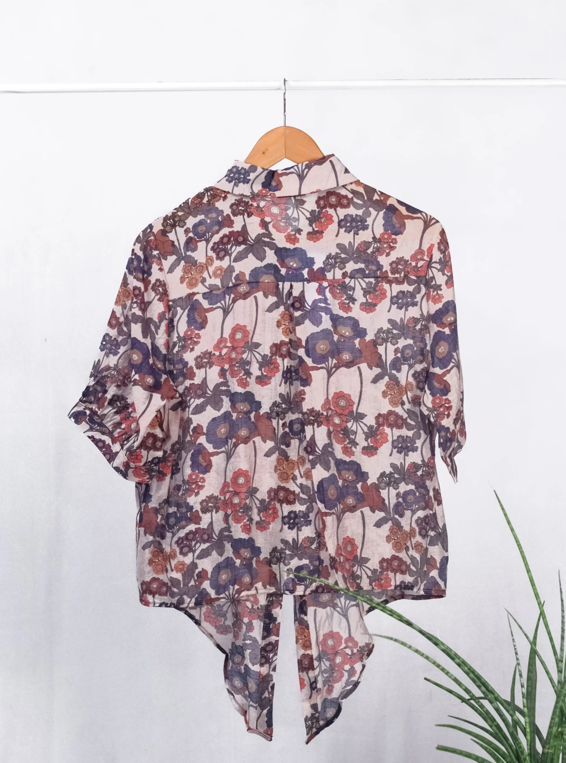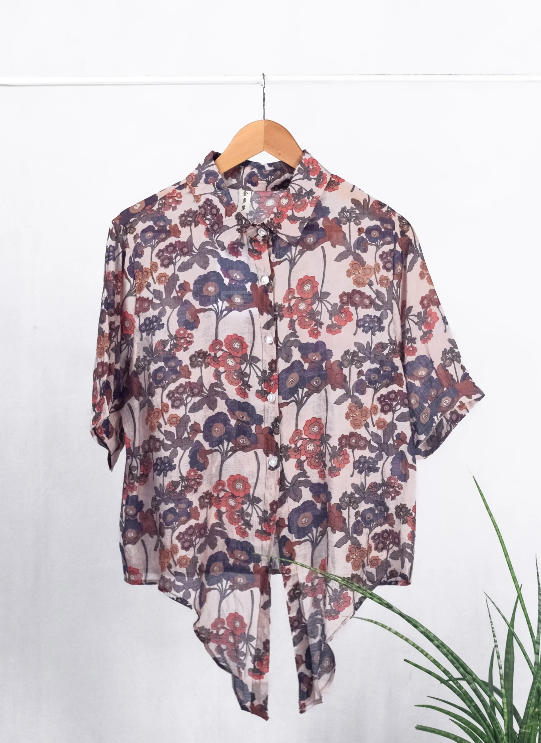 1. Elevate your wardrobe with this stunning floral shirt, designed with a unique v-shaped bottom that adds a touch of elegance to your outfit.
